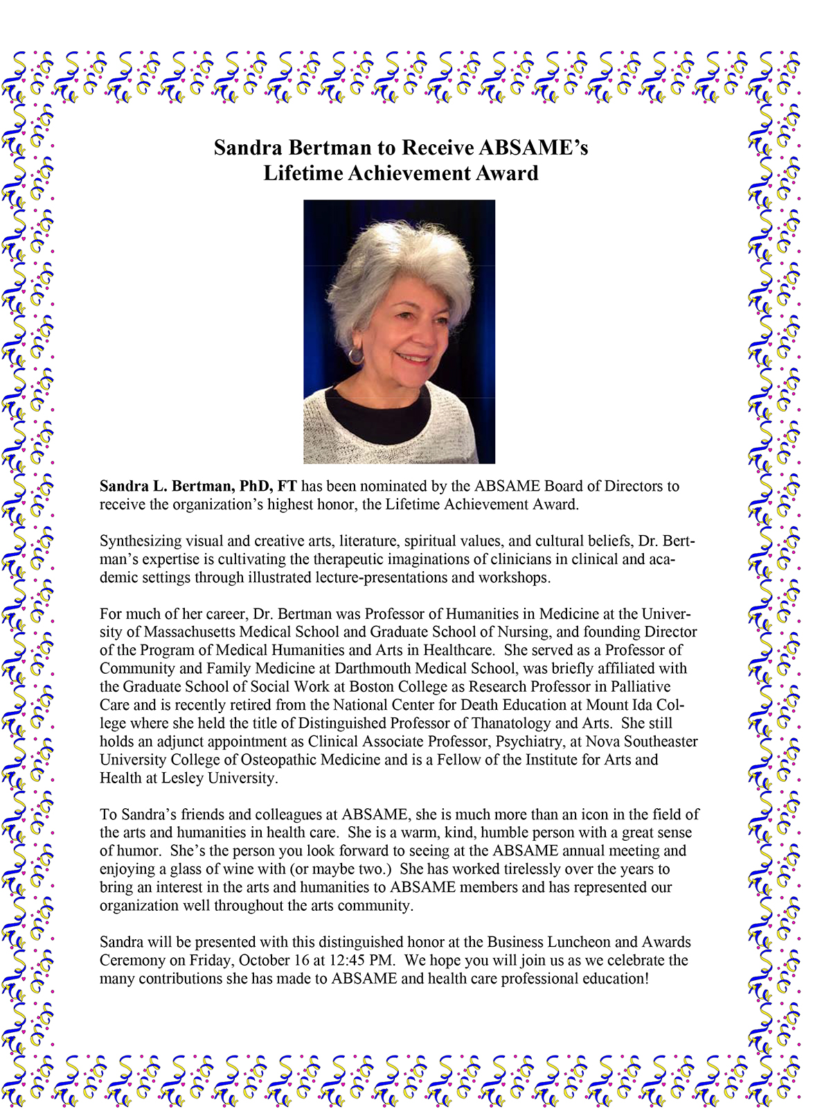 to Honoree, Sandra Bertman (2008) see photo