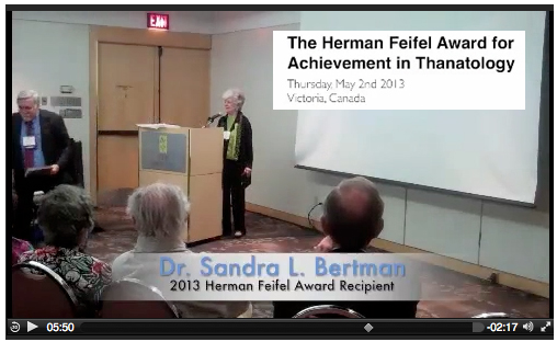 Herman Feifel Award, Lifetime Achievement Award, International Workgroup on Death, Dying & Bereavement, 2013 click to view