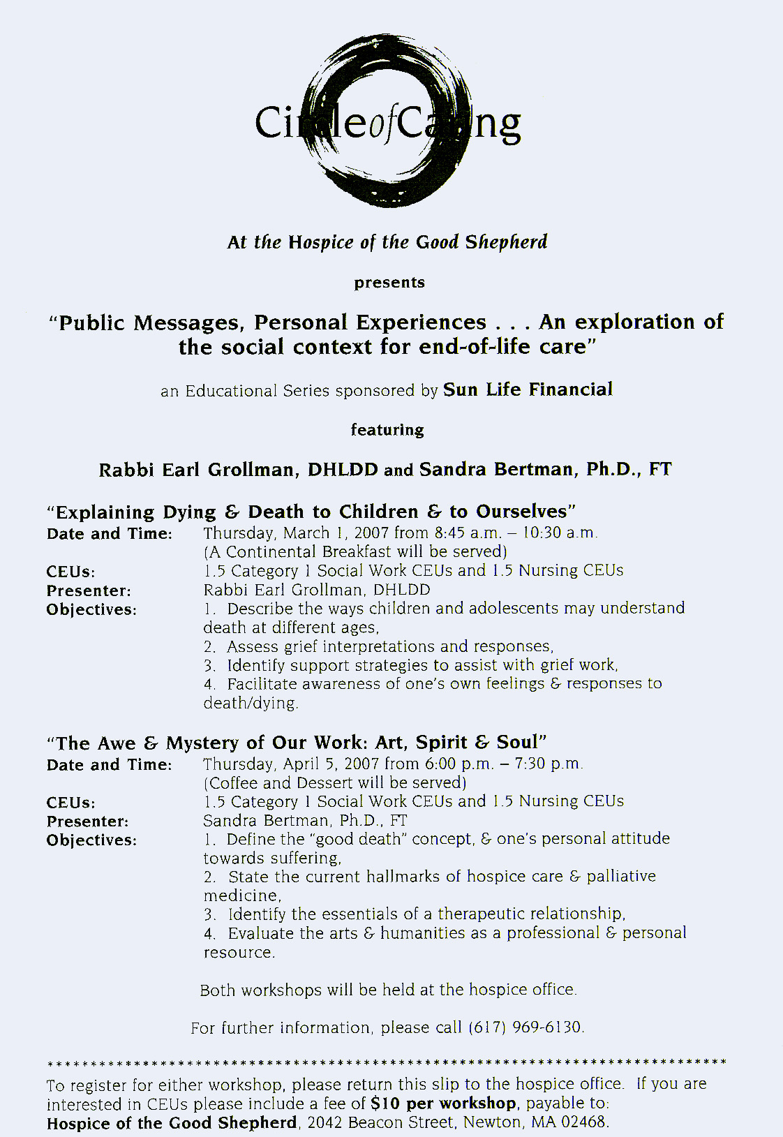 Facing Death: The Healing Power of Hope, Humor and Grief (Workshop)